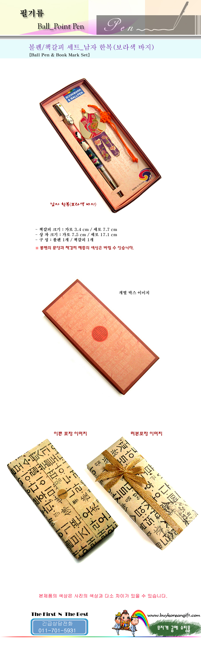 볼펜 책갈피(북마크) 세트/남자 한복(보라색 바지)