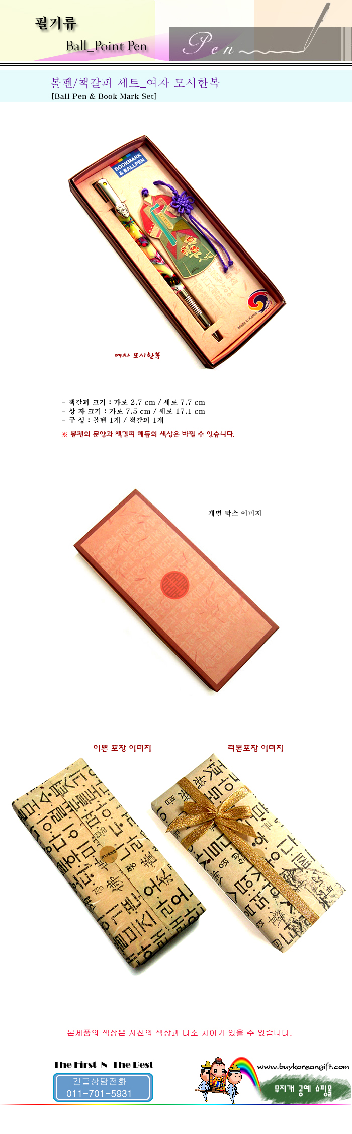 볼펜 책갈피(북마크) 세트/여자 모시 한복