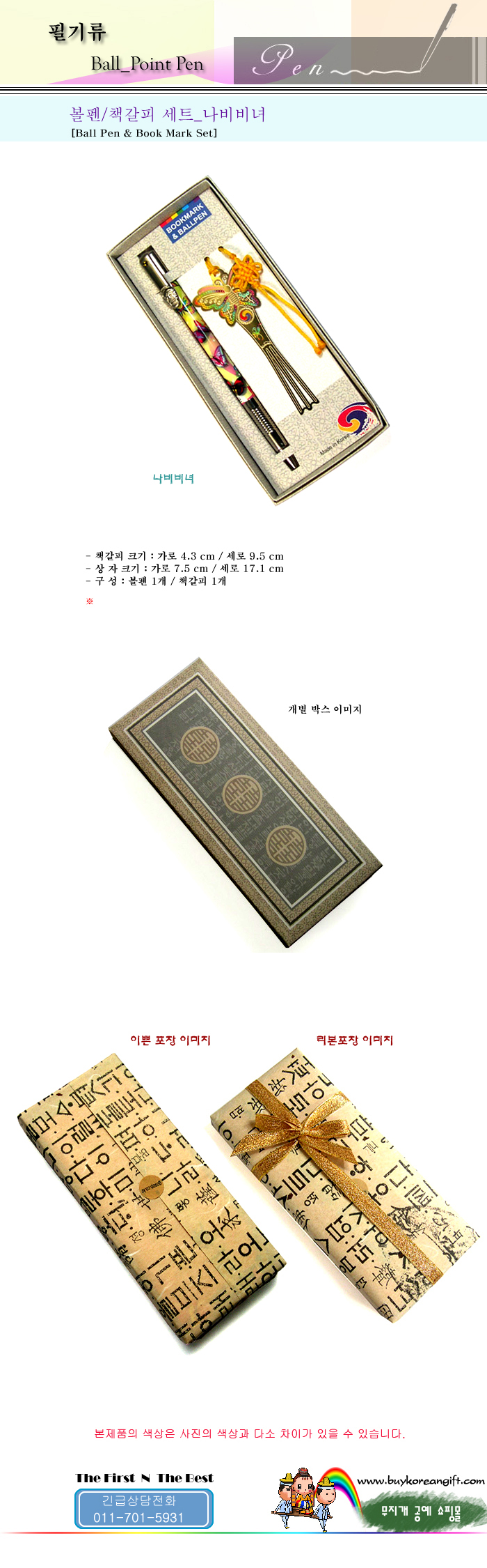 볼펜 책갈피(북마크) 세트/나비 비녀