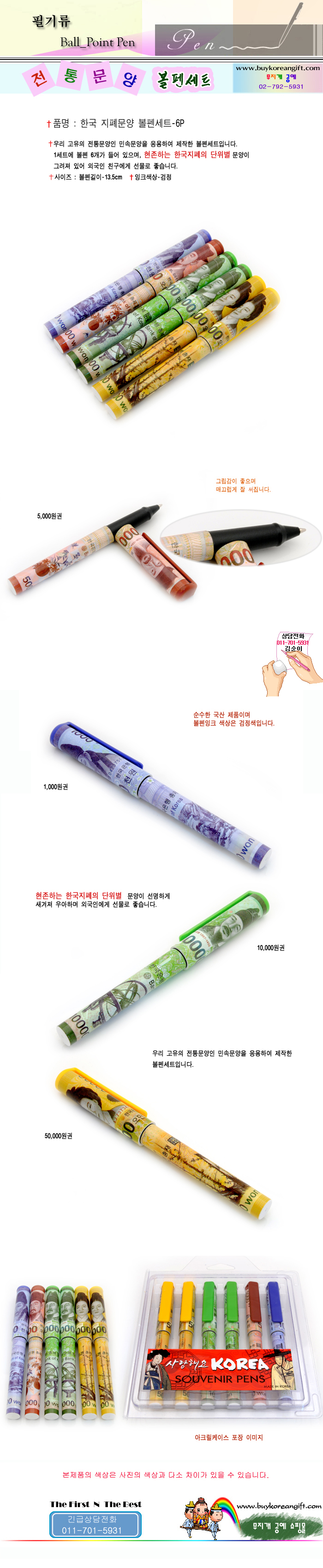 키워드 지폐문양 현존하는 한국지폐 친구선물 외국인선물 전통문양이 그려진 필기구 볼펜세트 이태원기념품가게