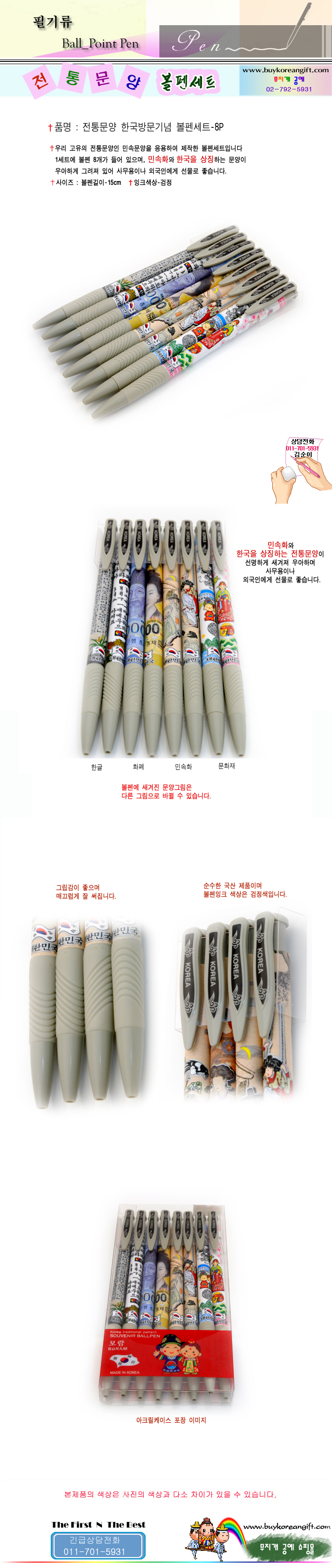 전통문양 한국방문기념 볼펜세트-8P