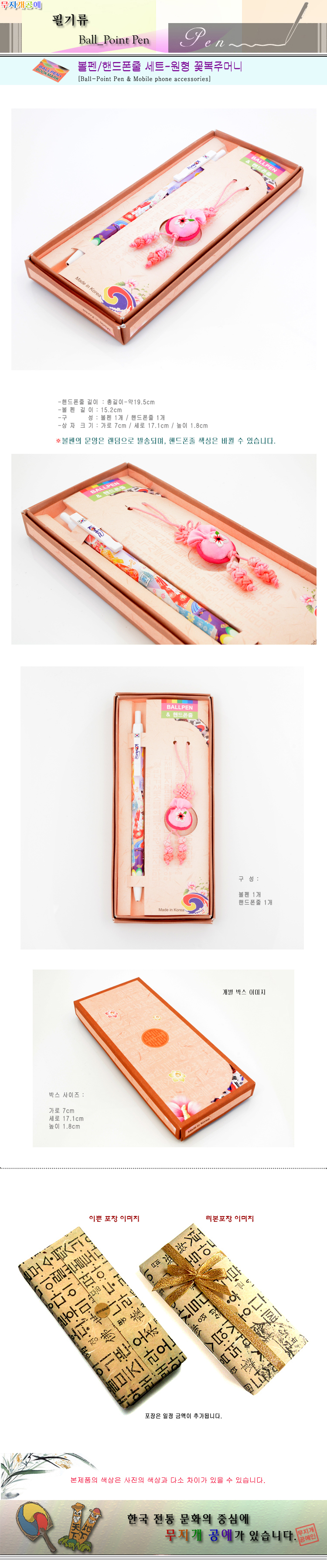 볼펜/핸드폰줄 세트-원형 꽃복주머니