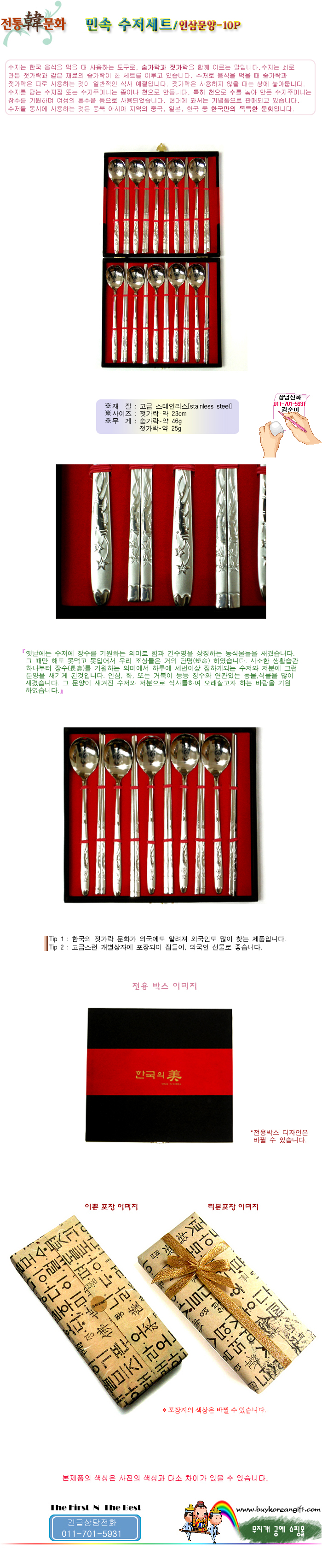 민속수저(숟가락, 젓가락)세트/인삼무늬-10P