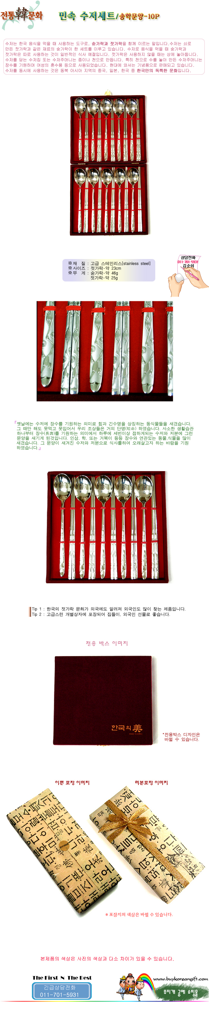 민속수저(숟가락, 젓가락)세트/송학무늬-10P