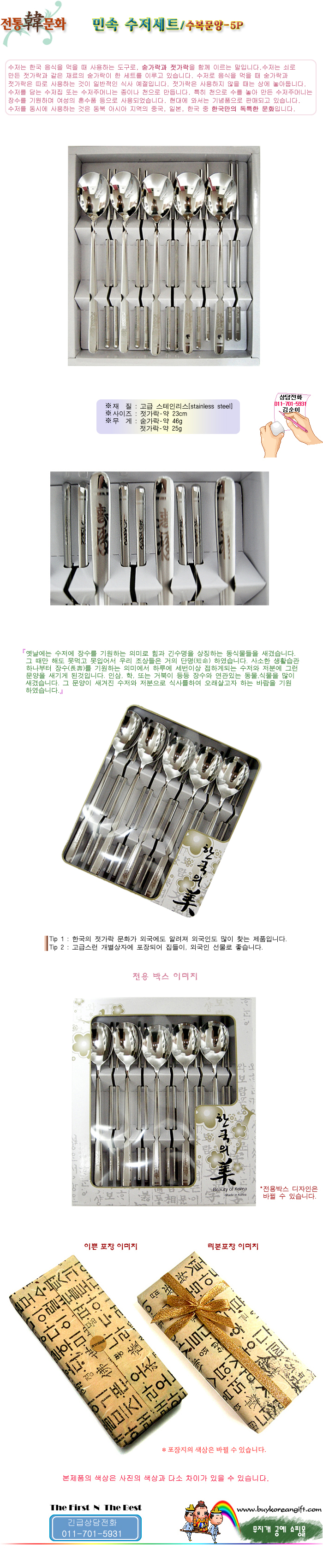 민속수저(숟가락, 젓가락)세트/수복무늬-5P
