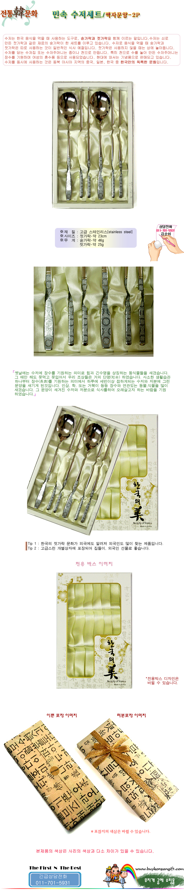 민속수저(숟가락, 젓가락)세트/백자무늬-2P