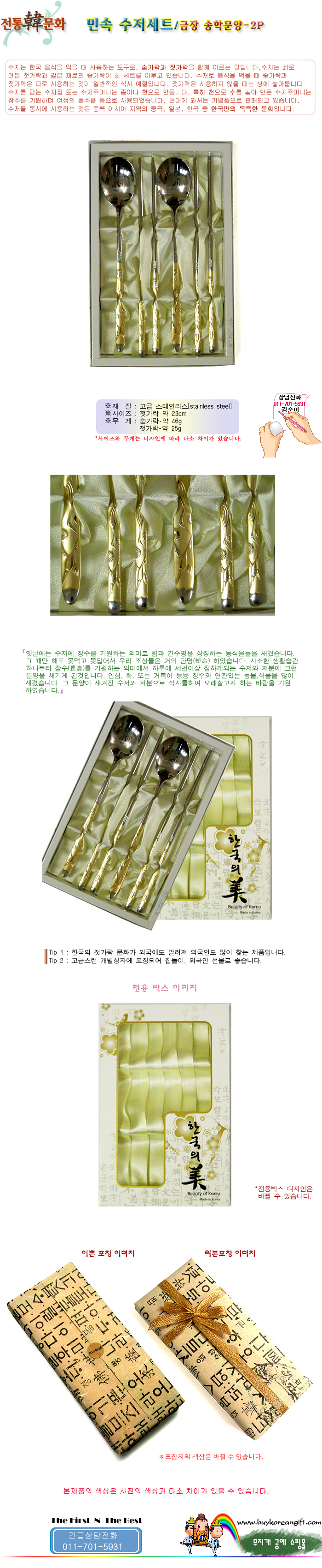 민속수저(숟가락, 젓가락)세트/금장 송학문양-2P