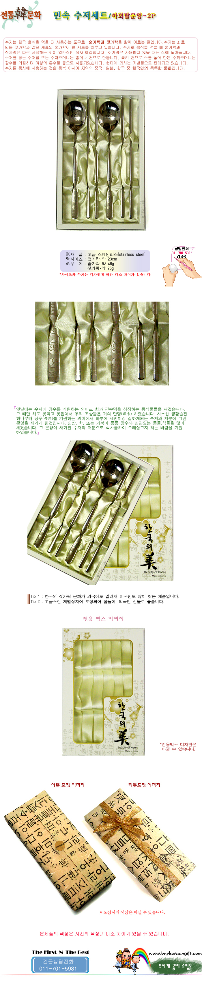 민속수저(숟가락, 젓가락)세트/하회탈 문양-2P