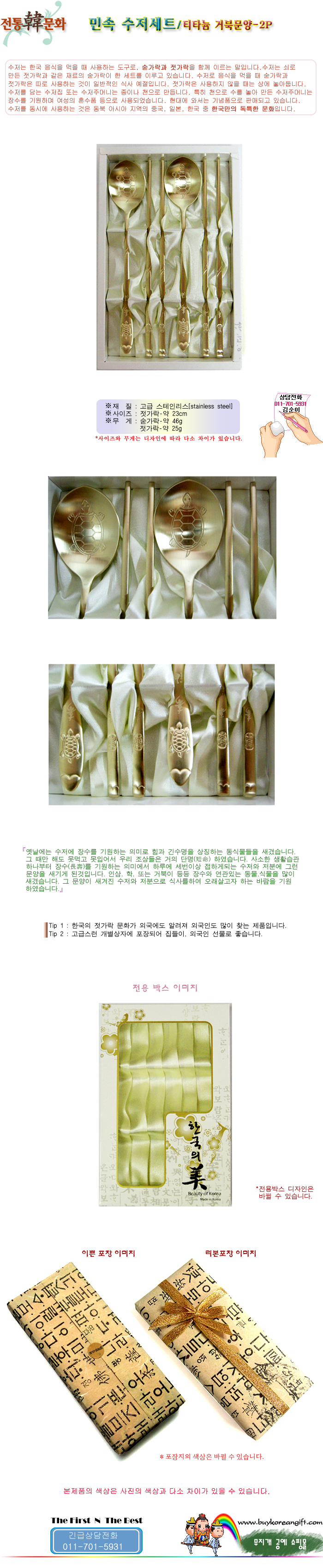 민속수저(숟가락, 젓가락)세트/티타늄 거북문양-2P