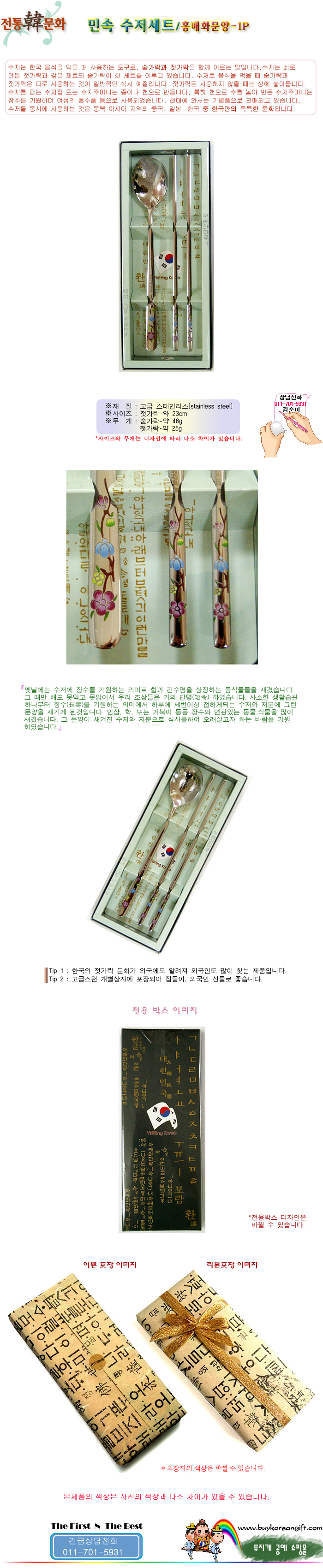 민속수저(숟가락, 젓가락)세트/홍매화 문양-1P