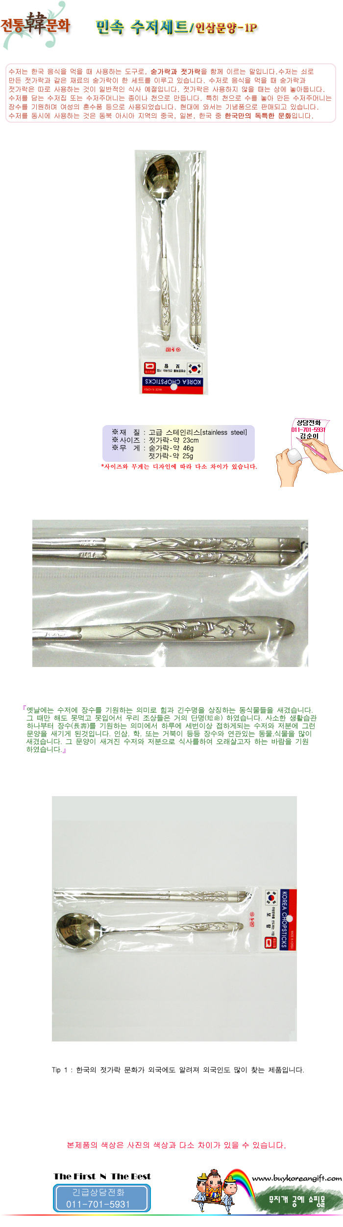 민속수저(숟가락, 젓가락)세트/인삼문양-1P