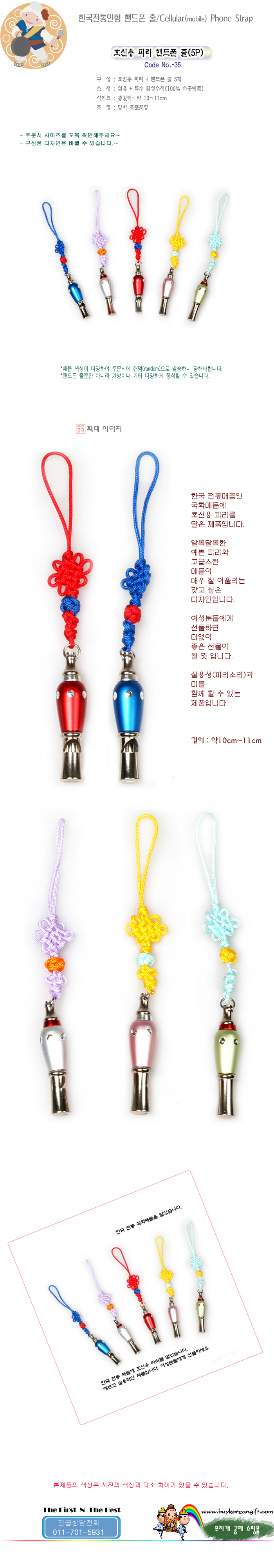 전통인형 핸드폰줄/호신용 피리 핸드폰줄(5P)