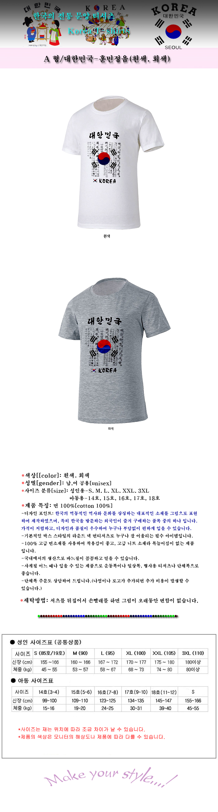 나염티셔츠A형/대한민국 - 훈민정음(흰색)