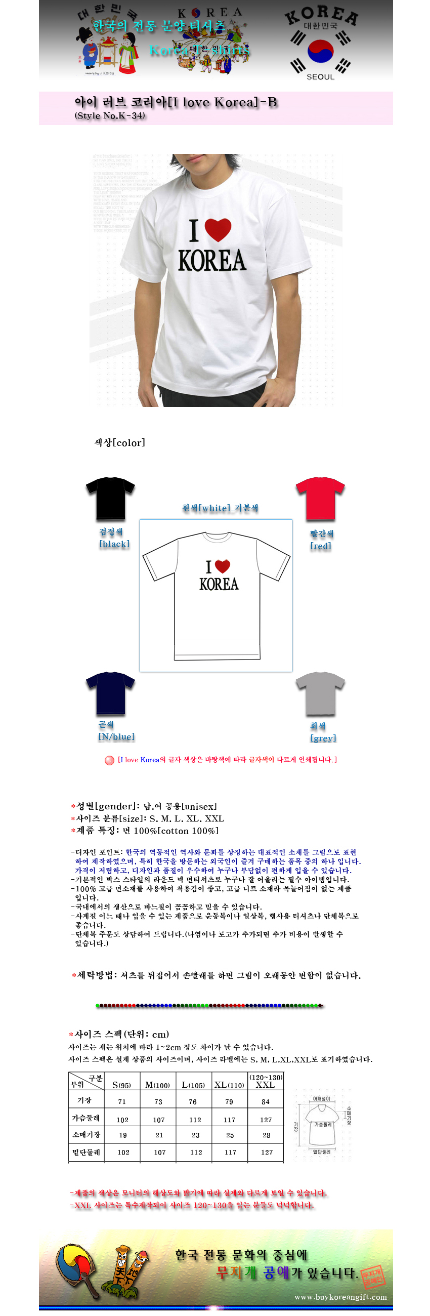 티셔츠(T-shirts)/아이 러브 코리아(k-34)