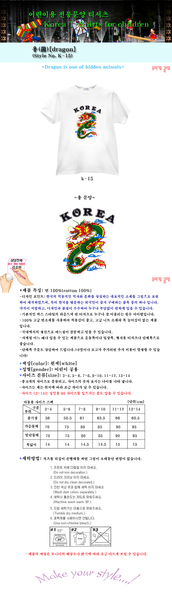 제품 요약 정보 한국 전통문양을 소재로 제작한 어린용 티셔츠