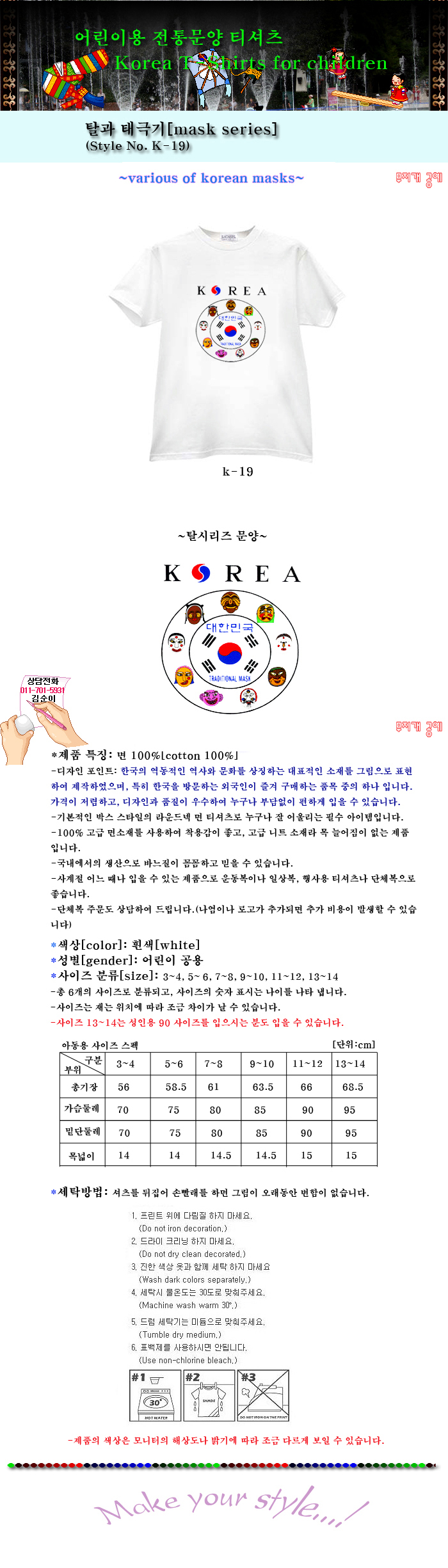 어린이용 티셔츠(T-shirts)/k-19 [탈과 태극기]