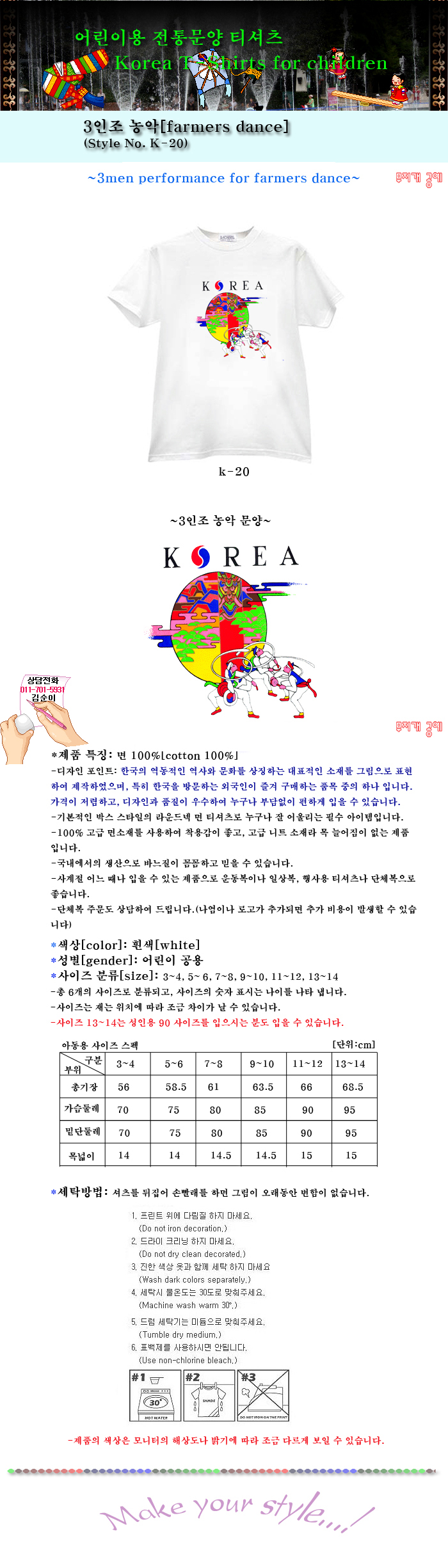 제품 요약 정보 한국 전통문양을 소재로 제작한 어린용 티셔츠