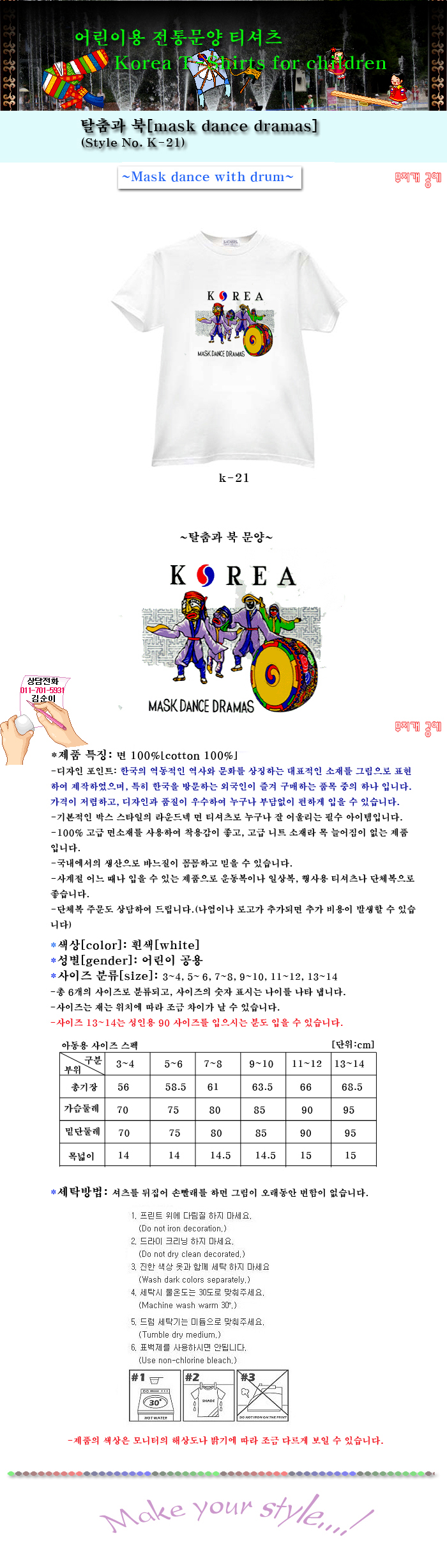 어린이용 티셔츠(T-shirts)/k-21 [탈춤과 북]