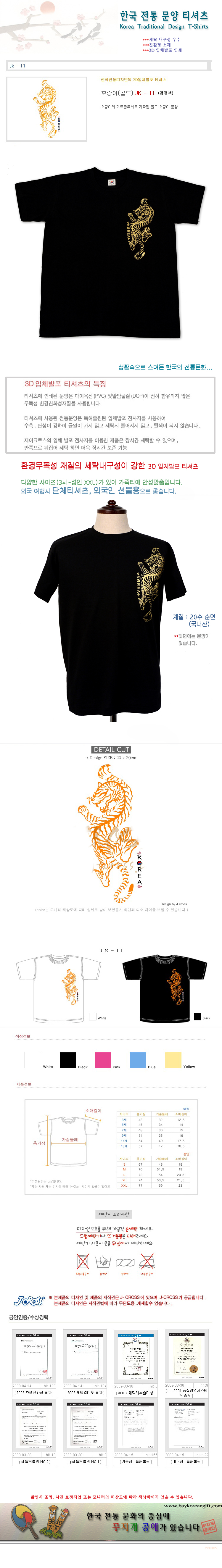 한국전통문양티셔츠/호랑이골드JK-011(검정)