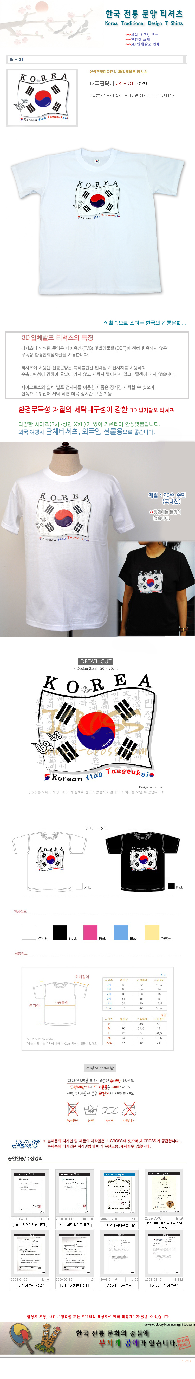 한국전통문양티셔츠/태극펄럭이JK-31(흰색)