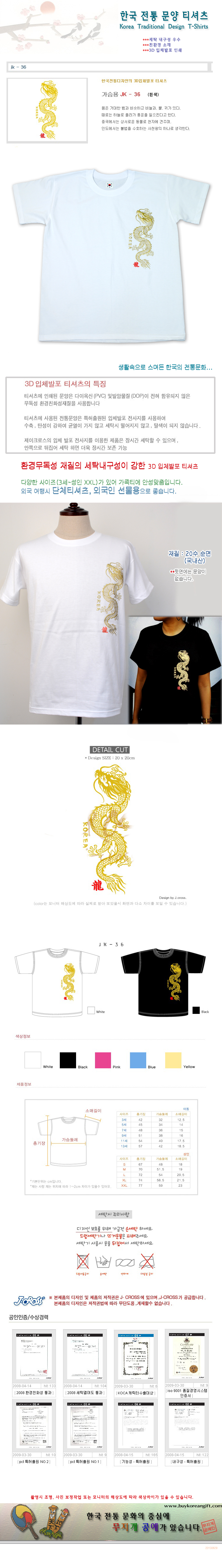 한국전통문양티셔츠/가슴용JK-36(흰색)