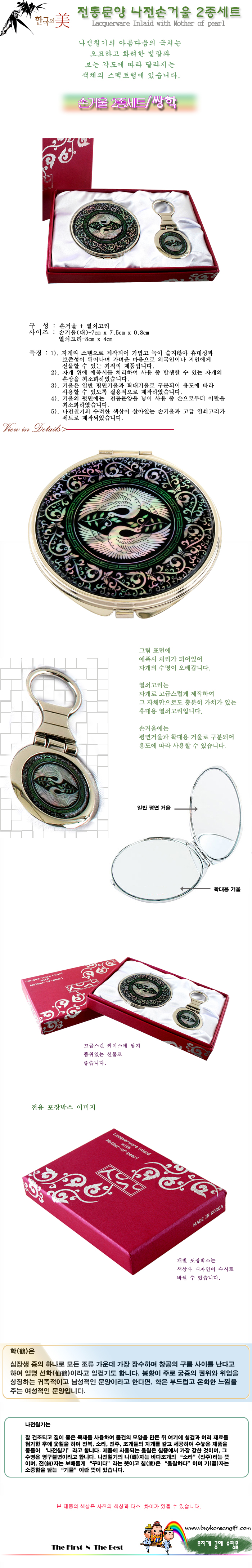 나전 손거울 2종 세트/쌍학(雙鶴)