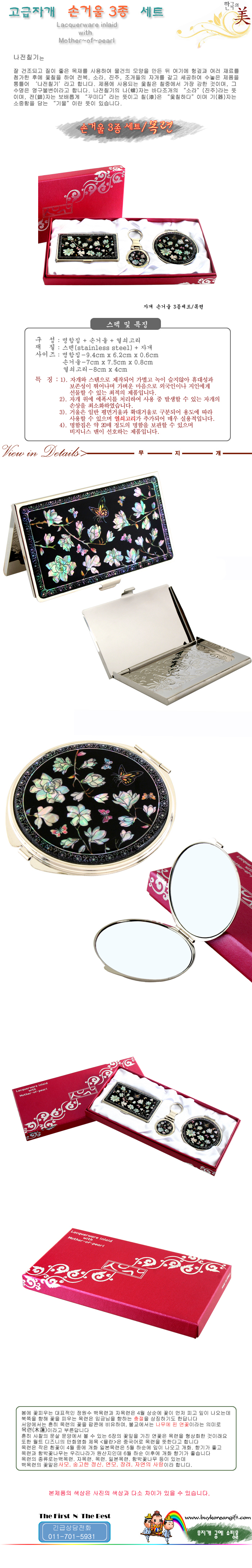 자개손거울 3종세트/목련(木蓮=Magnolia)