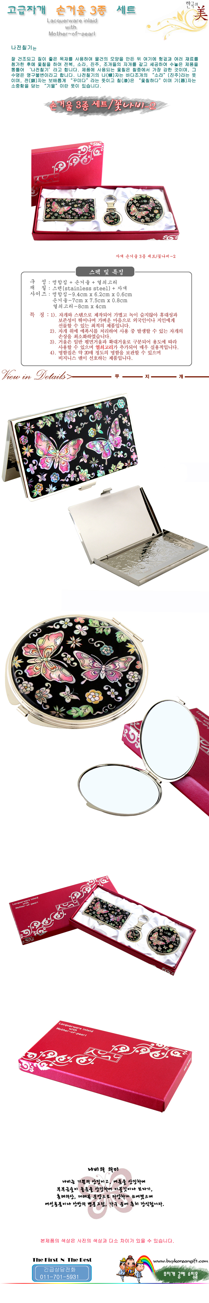 자개손거울 3종세트/꽃나비-2