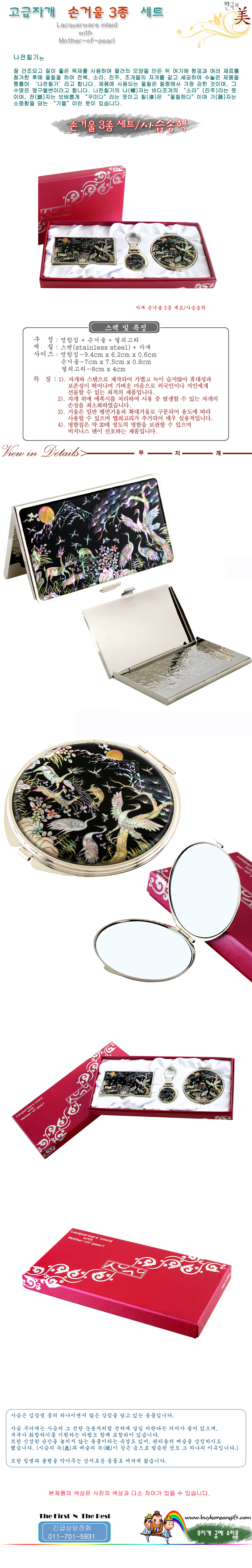 자개손거울 3종세트/사슴송학