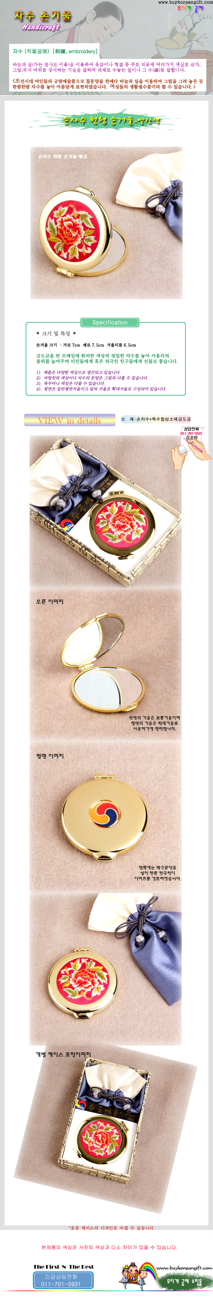 손자수 원형 손거울-빨간색