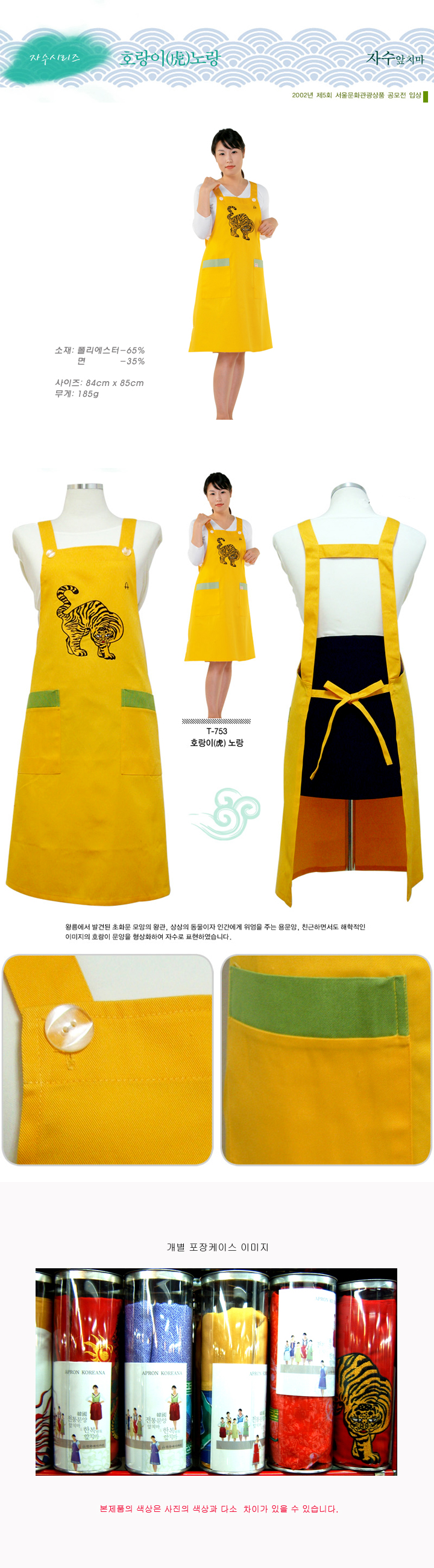 전통문양 앞치마/호랑이(노랑)