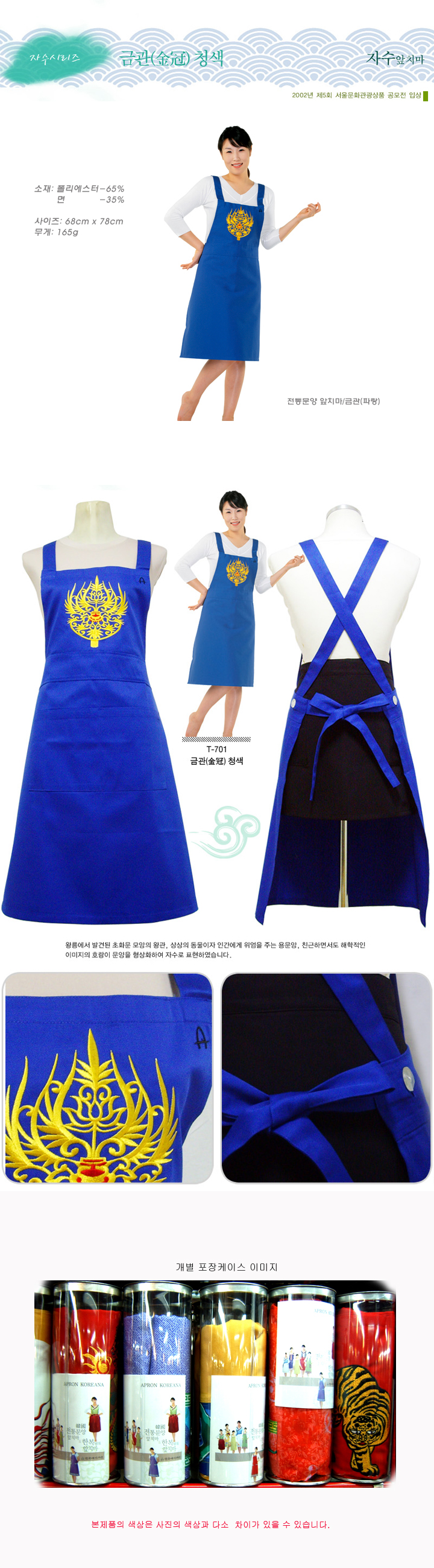 전통문양 앞치마/금관(파랑)