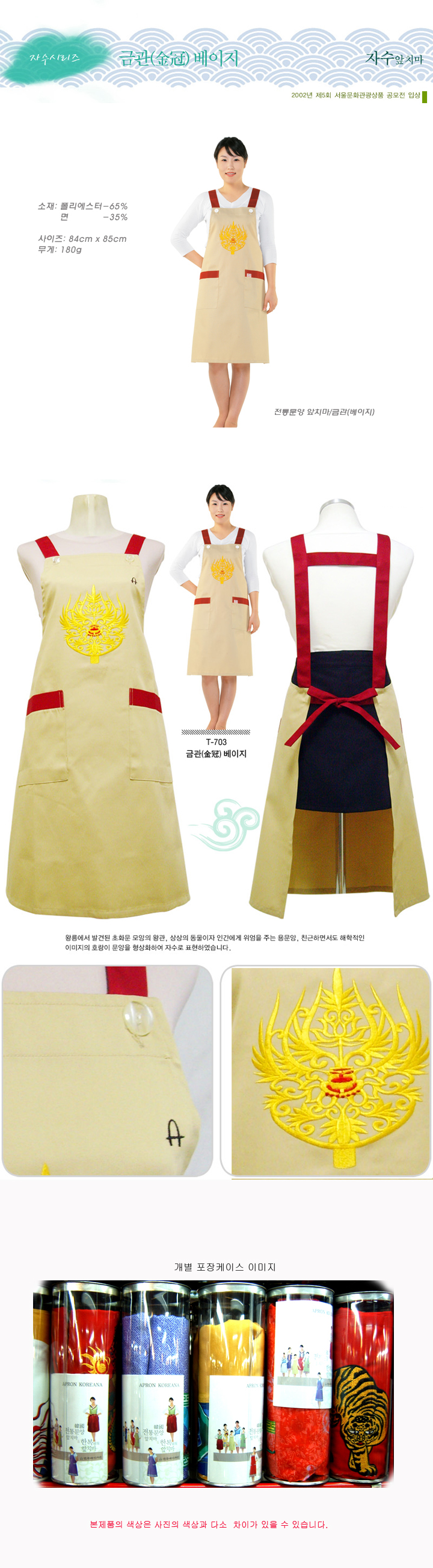 전통문양 앞치마/금관(베이지)