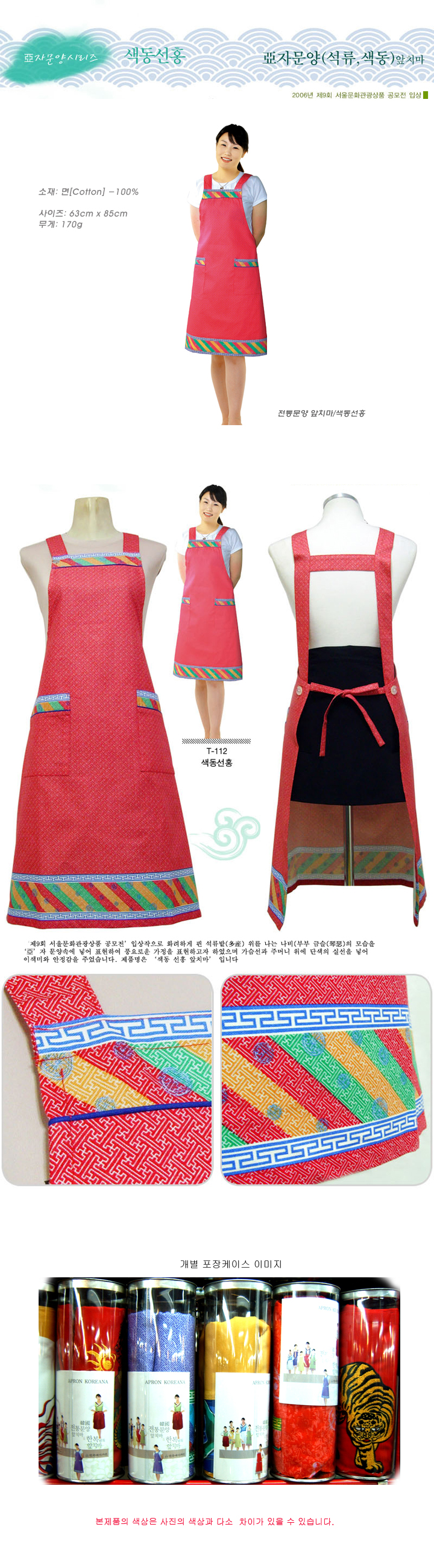 전통문양 앞치마/색동선홍