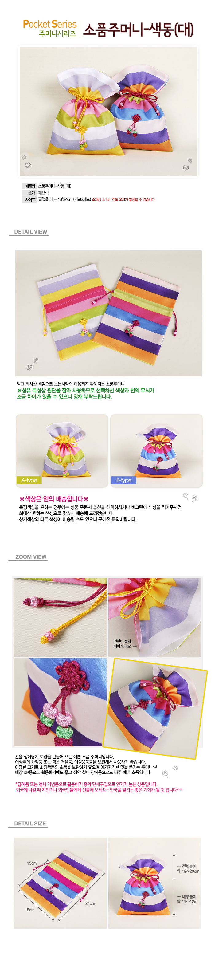 주머니 파우치/ 소품 주머니 - 색동(대)