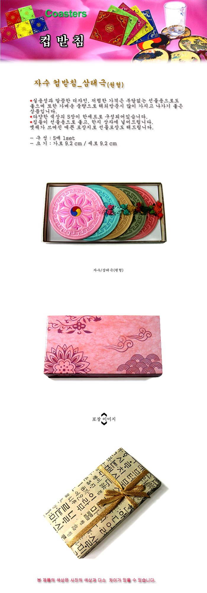 섬유 문양 컵받침/삼태극 [원형]