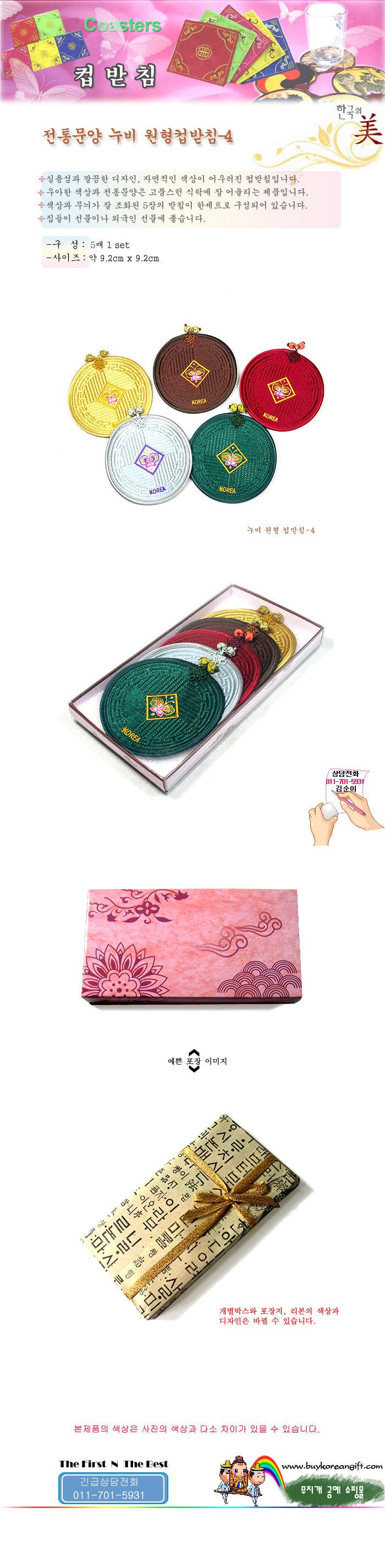 전통 문양 누비 원형 컵받침-4