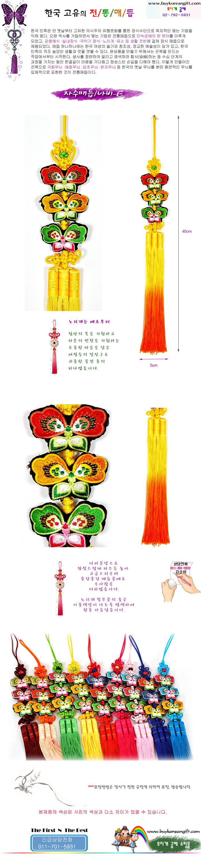자수매듭/노리개- 3단 나비(노란색)
