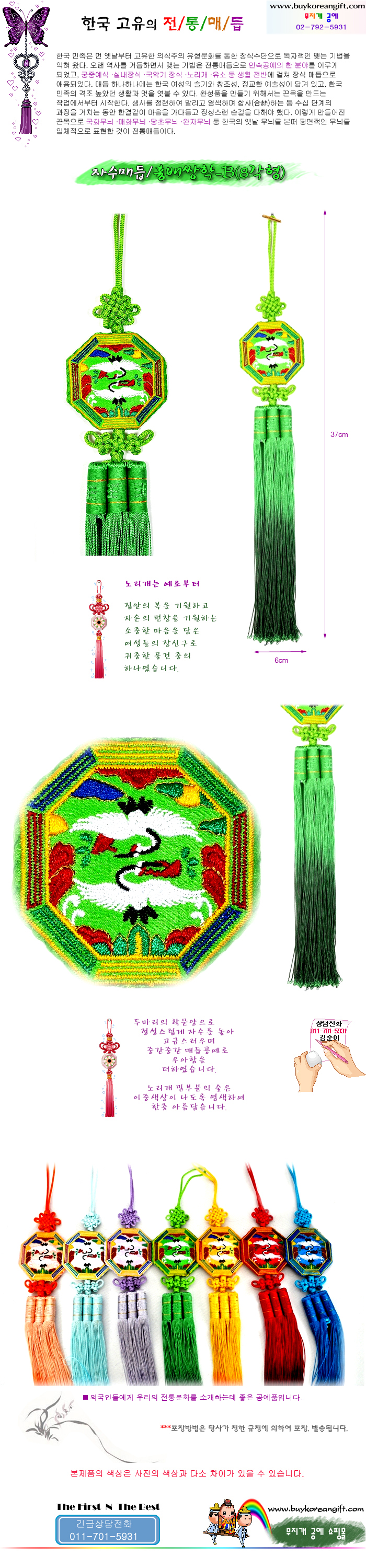 자수매듭/노리개- 팔각흉배/ 쌍학(연두색)