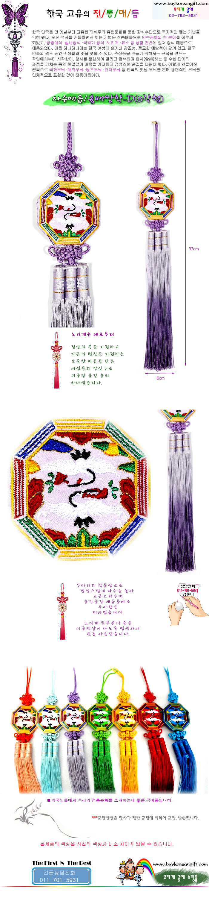 자수매듭/노리개- 팔각흉배/ 쌍학(보라색)