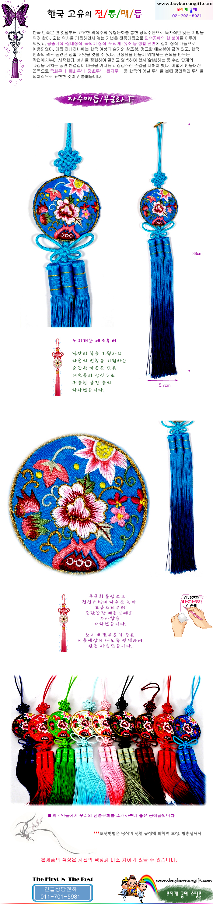 자수매듭/노리개- 목단(북청색)