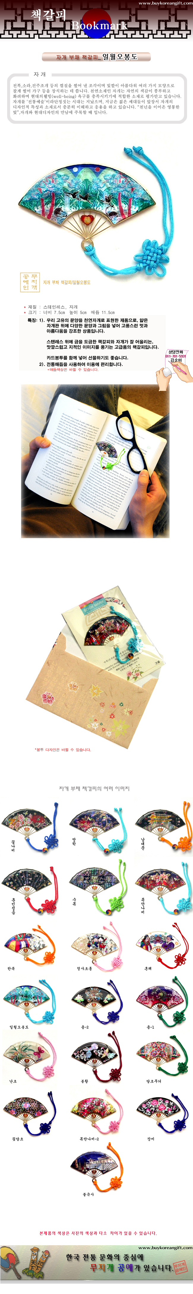 전통문양 자개 부채책갈피(북마크)/일월오봉도