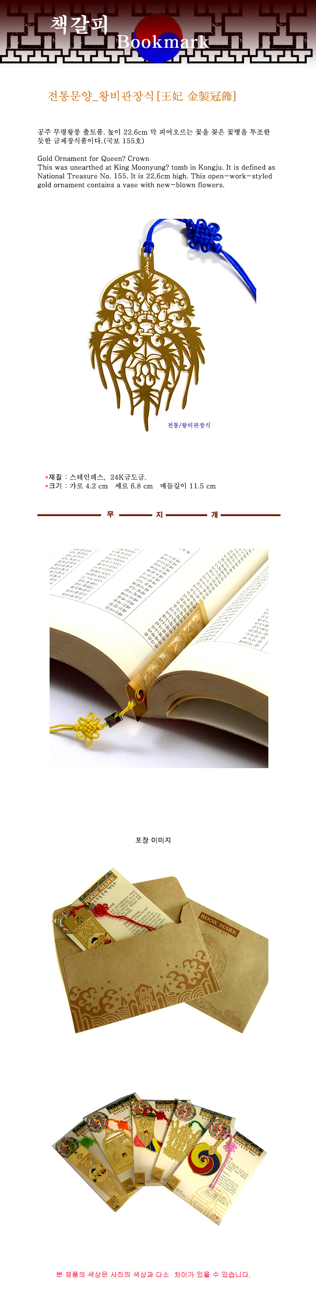 전통문양 책갈피 북마크/왕비관장식