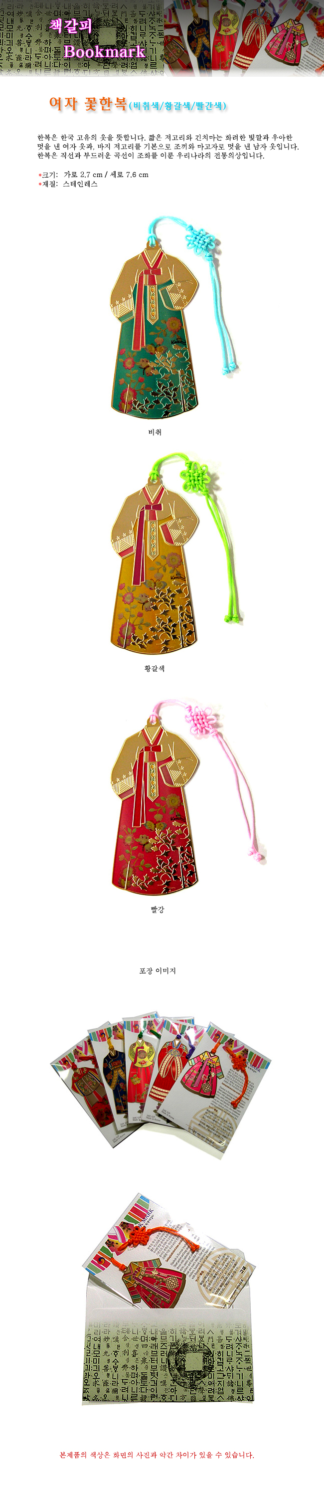 한복 책갈피 북마크/여자 꽃한복