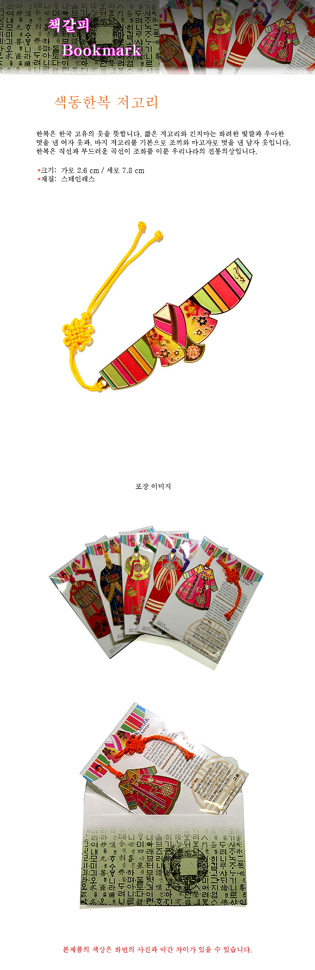한복 책갈피 북마크/색동 한복저고리