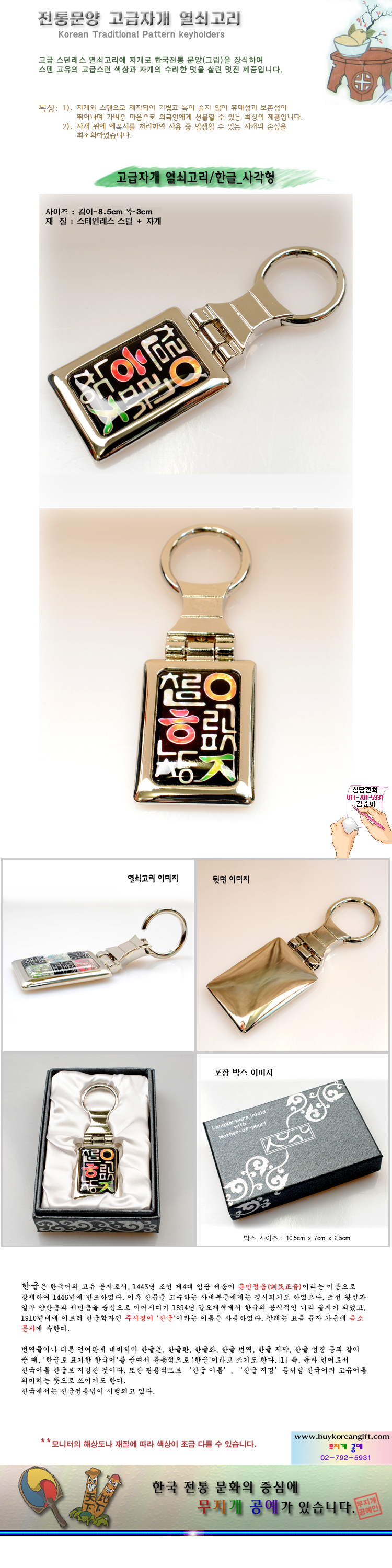 고급자개 열쇠고리(key holder)/한글[사각]