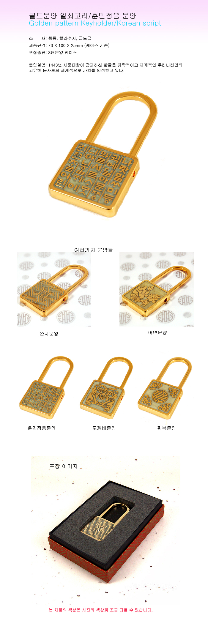 자물쇠형 금문양 열쇠고리/훈민정음 문양