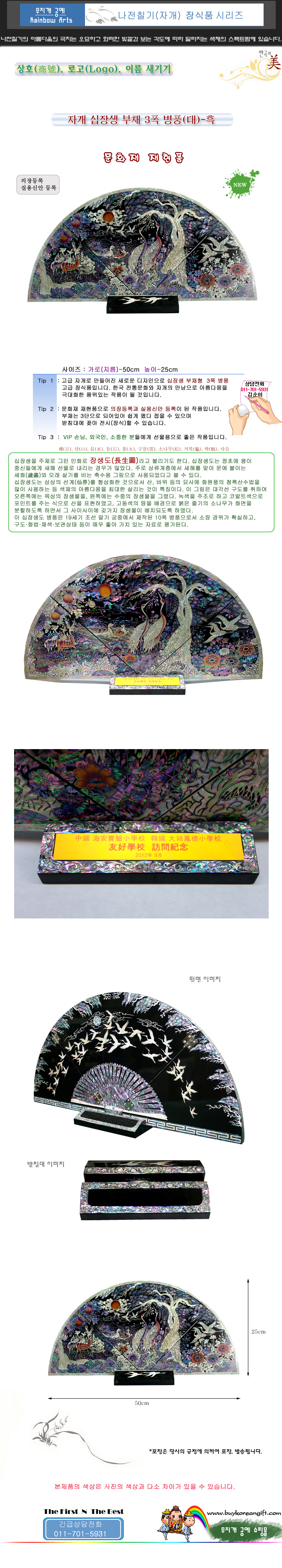 문화재 재현/자개 십장생 부채 3폭병풍(흑)-대