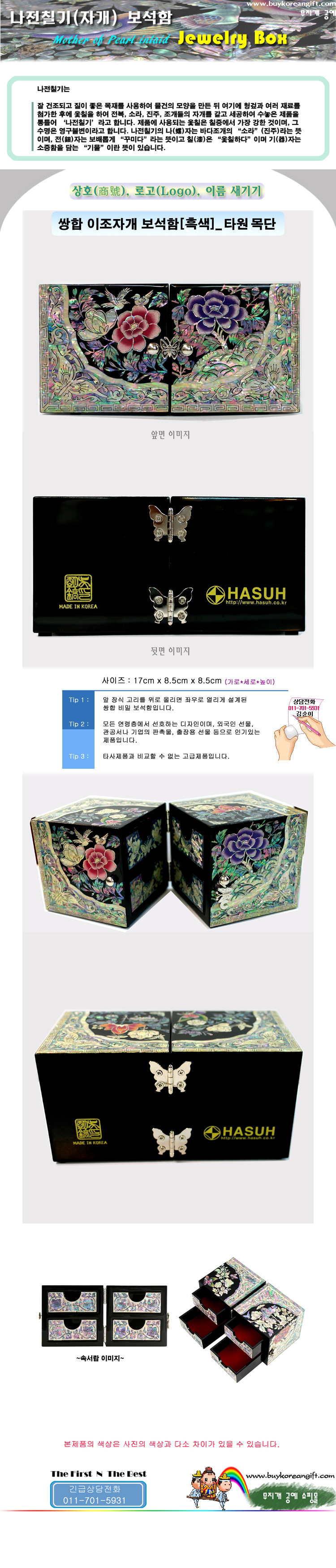 쌍합 이조자개 보석함(흑)-타원목단